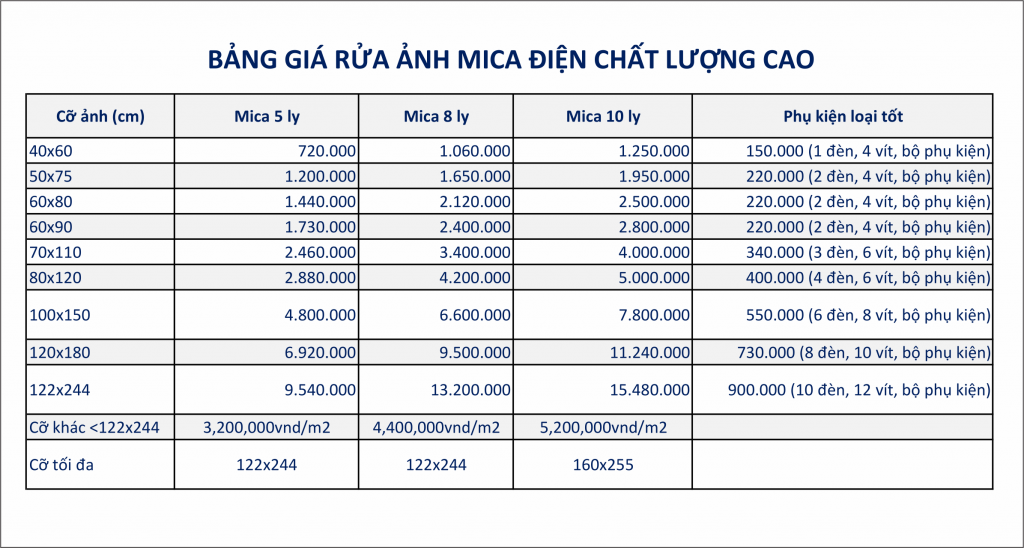 bảng giá in ảnh điện mica